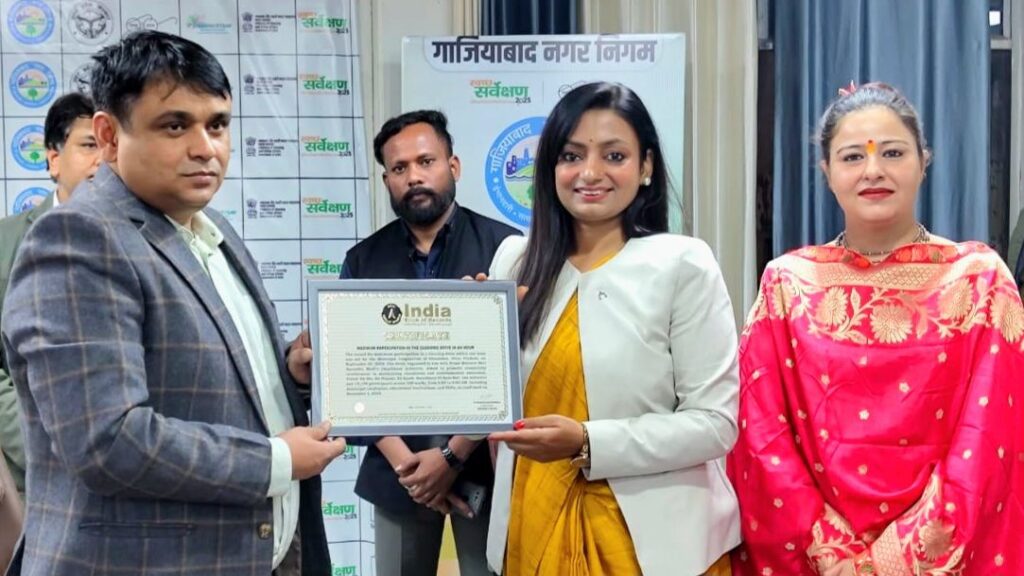 यूपी – गाजियाबाद नगर निगम ने स्वच्छता के क्षेत्र में नया इतिहास रचते हुए पूरे देश के लिए एक मिसाल पेश की है। 25 सितंबर 2025 को “एक दिन, एक घंटा, एक साथ – स्वच्छता ही सेवा है” अभियान के अंतर्गत मात्र एक घंटे में 15,156 प्रतिभागियों ने सामूहिक रूप से सफाई अभियान चलाकर इंडिया बुक ऑफ रिकॉर्ड में गाजियाबाद का नाम दर्ज कराया।