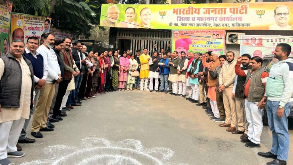 यूपी – गाजियाबाद, भारतीय जनता पार्टी के संगठन पर्व के अंतर्गत रविवार, 14 दिसंबर 2025 को भाजपा प्रदेश अध्यक्ष के निर्वाचन कार्यक्रम का लाइव प्रसारण महानगर कार्यालय, नेहरू नगर, गाजियाबाद में आयोजित किया गया। जैसे ही निर्वाचन की औपचारिक घोषणा हुई, कार्यालय में उपस्थित कार्यकर्ताओं में भारी उत्साह देखने को मिला। पूरे वातावरण में उत्सव जैसा माहौल बन गया।