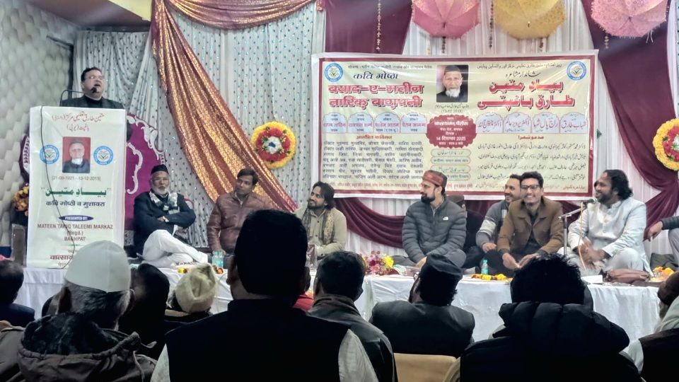 यूपी – बागपत, वात्स्यायन पैलेस में मरहूम मतीन तारिक की स्मृति में मुशायरा और कवि सम्मेलन का आयोजन किया गया, जिसमें करीब चार दर्जन शायरों और कवियों ने अपनी रचनाओं से साहित्यप्रेमियों को मंत्रमुग्ध कर दिया। नगर और आसपास के क्षेत्रों से बड़ी संख्या में पहुंचे श्रोताओं ने कार्यक्रम को गरिमामय बना दिया। आयोजन का उद्देश्य मरहूम मतीन तारिक के साहित्यिक योगदान को याद करना और नई पीढ़ी को साहित्य से जोड़ना रहा।