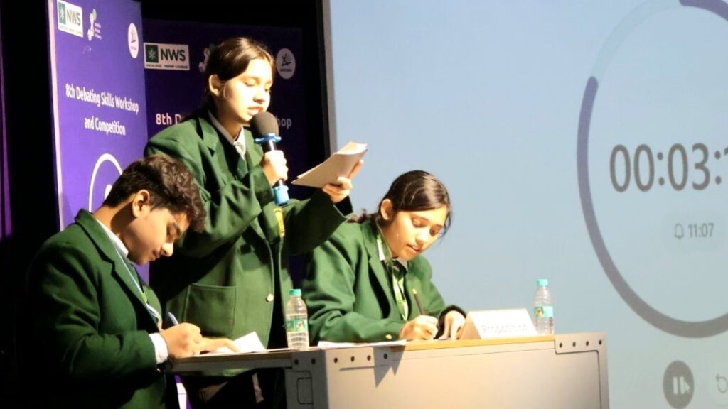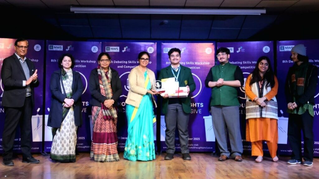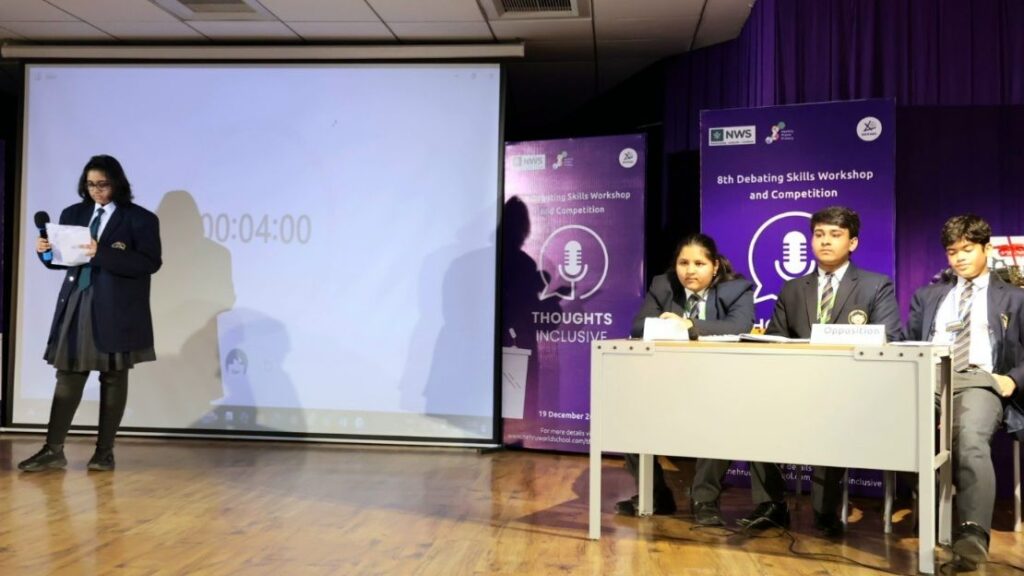 यूपी – गाजियाबाद। नेहरू वर्ल्ड स्कूल, गाजियाबाद द्वारा 19 दिसंबर 2025, शुक्रवार को “वाद-विवाद कौशल कार्यशाला व प्रतियोगिता” का भव्य आयोजन किया गया। प्रतियोगिता का प्रारूप विश्वस्तरीय वाद-विवाद प्रतियोगिता के अनुरूप रखा गया, जिसमें विभिन्न टीमों के बीच तर्क-वितर्क की निरंतरता और गतिशीलता देखने को मिली। कार्यक्रम का उद्देश्य छात्रों में तार्किक सोच, प्रभावी अभिव्यक्ति और असहमत विचारों का सशक्त विरोध करने की क्षमता का विकास करना रहा।