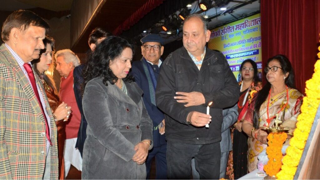 यूपी – गाजियाबाद। गांधर्व संगीत महाविद्यालय, गाजियाबाद का 44वाँ वार्षिकोत्सव 25 दिसंबर 2025 को हिन्दी भवन, लोहिया नगर में अत्यंत गरिमामय एवं सांस्कृतिक वातावरण में सम्पन्न हुआ। कार्यक्रम का शुभारंभ अतिथियों द्वारा दीप प्रज्ज्वलन एवं सरस्वती वंदना के साथ हुआ, जिसके पश्चात वन्दे मातरम् की भावपूर्ण प्रस्तुति दी गई।