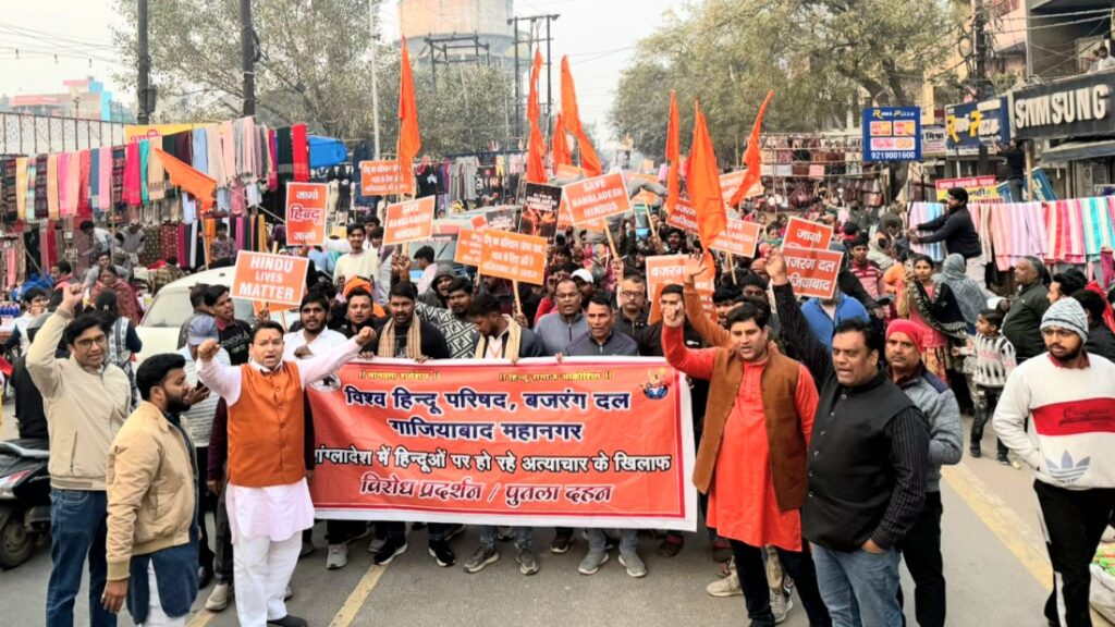 यूपी – गाजियाबाद, विश्व हिंदू परिषद एवं बजरंग दल नंदग्राम प्रखंड द्वारा बांग्लादेश में लगातार हिंदुओं पर हो रही हिंसा और हिंदू श्रमिक दीपू चंद्र दास की बर्बर हत्या के विरोध में बांग्लादेश सरकार का पुतला दहन कर जोरदार प्रदर्शन किया गया। प्रदर्शन में बड़ी संख्या में कार्यकर्ताओं ने भाग लिया और बांग्लादेश में अल्पसंख्यकों पर हो रहे अत्याचारों के खिलाफ नारेबाजी की।