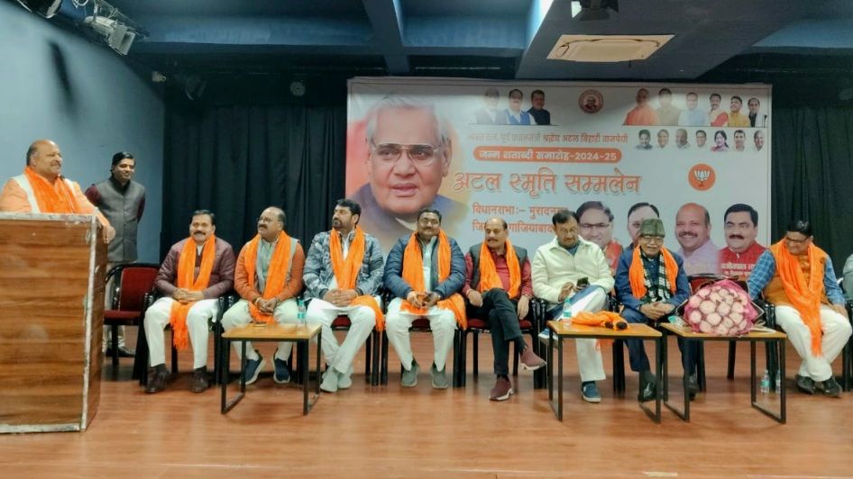 यूपी – गाजियाबाद। पूर्व प्रधानमंत्री पंडित अटल बिहारी वाजपेई के जन्म शताब्दी वर्ष के अवसर पर मुरादनगर विधानसभा संगोष्ठी का आयोजन मंगलवार को जानकी भवन, कविनगर रामलीला ग्राउंड में गरिमामय वातावरण में संपन्न हुआ। कार्यक्रम का आयोजन भारतीय जनता पार्टी महानगर अध्यक्ष मयंक गोयल के आह्वान पर मुरादनगर विधायक अजीत पाल त्यागी के नेतृत्व में किया गया।