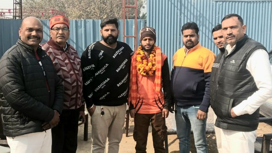 यूपी – नोएडा। आज दिनांक 15 जनवरी 2026 को 55 प्रतिशत विकलांग सैन वासु राइडर नंदवंशी का गौर सिटी, रिछपाल गढ़ी स्थित सैन फार्म पर भारतीय सैन समाज की ओर से भव्य स्वागत किया गया। भारतीय सैन समाज के राष्ट्रीय उपाध्यक्ष बाबूलाल सैन, जिला अध्यक्ष चमन सिंह सैन और महानगर अध्यक्ष विजय कुमार सैन के नेतृत्व में दो दर्जन से अधिक लोगों ने पटका और फूल माला पहनाकर नंदवंशी का उत्साहवर्धन किया।