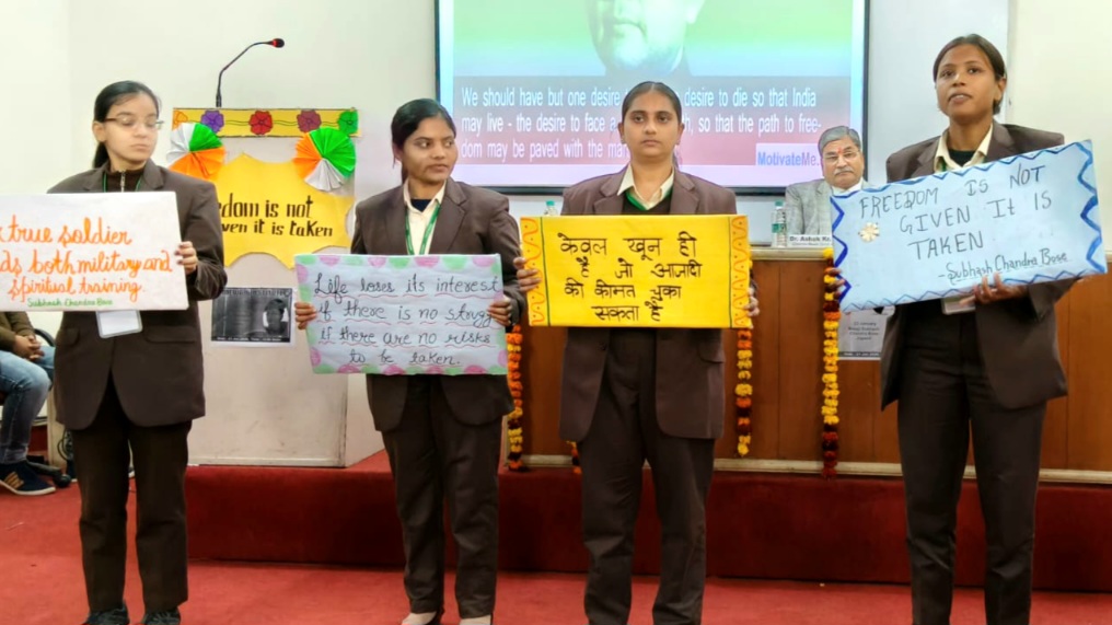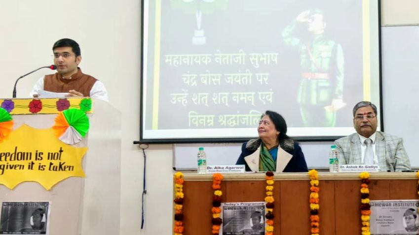 यूपी – गाजियाबाद। वसुंधरा सेक्टर-4सी स्थित मेवाड़ ग्रुप ऑफ इंस्टीट्यूशंस में नेताजी सुभाष चंद्र बोस की जयंती पराक्रम दिवस के रूप में श्रद्धा और उत्साह के साथ मनाई गई। इस अवसर पर विद्यार्थियों द्वारा प्रस्तुत देशभक्ति से ओतप्रोत कार्यक्रमों ने पूरे परिसर को राष्ट्रभक्ति के रंग में रंग दिया।