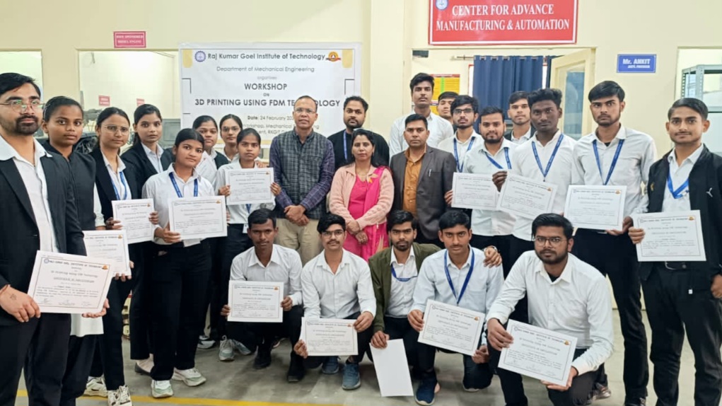 यूपी – गाजियाबाद। Raj Kumar Goel Institute of Technology (आरकेजीआईटी) के मैकेनिकल इंजीनियरिंग विभाग द्वारा 24 फरवरी को एफडीएम तकनीक आधारित 3डी प्रिंटिंग विषय पर एक दिवसीय विशेष कार्यशाला आयोजित की गई। कार्यशाला में डिप्लोमा के विद्यार्थियों ने उत्साहपूर्वक भाग लेते हुए 3डी प्रिंटिंग का सैद्धांतिक एवं व्यावहारिक ज्ञान प्राप्त किया।