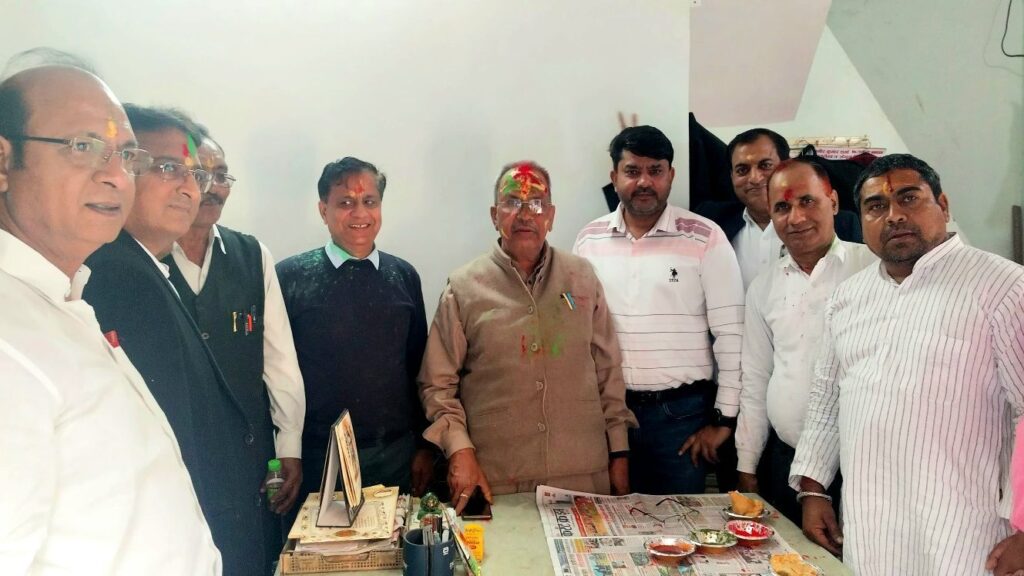 यूपी – गाजियाबाद। प्रत्येक वर्ष की भांति इस वर्ष भी सिविल कोर्ट परिसर स्थित चैंबर संख्या 647 पर नाहर सिंह यादव, पूर्व अध्यक्ष बार एसोसिएशन गाजियाबाद के नेतृत्व में होली मिलन समारोह आयोजित किया गया। कार्यक्रम में अधिवक्ताओं ने सौहार्दपूर्ण वातावरण में एक-दूसरे को गुलाल लगाकर होली की शुभकामनाएं दीं।