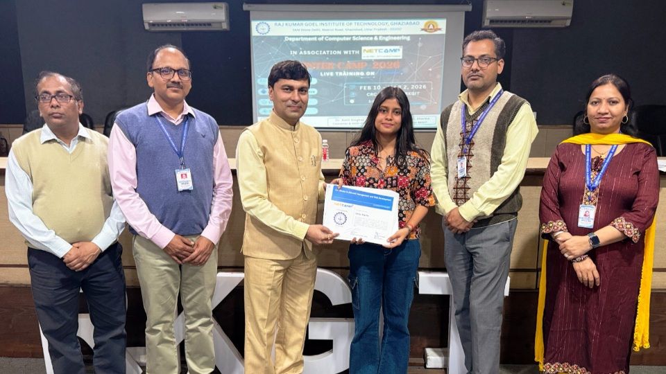 यूपी – गाजियाबाद। मेरठ रोड स्थित राजकुमार गोयल इंस्टीट्यूट ऑफ टेक्नोलॉजी (आरकेजीआईटी) में कंप्यूटर साइंस एंड इंजीनियरिंग विभाग द्वारा बीटेक द्वितीय वर्ष के छात्रों के लिए आयोजित 21 दिवसीय शीतकालीन तकनीकी कैंप का समापन किया गया। कैंप के दौरान नेट कैंप सॉल्यूशन प्राइवेट लिमिटेड के डायरेक्टर शांतू पुरकेत ने एंड्रॉइड एप्लीकेशन, एथिकल हैकिंग, नेटवर्किंग और वेब एप्लीकेशन डेवलपमेंट जैसे विषयों पर छात्रों को प्रैक्टिकल प्रशिक्षण दिया।