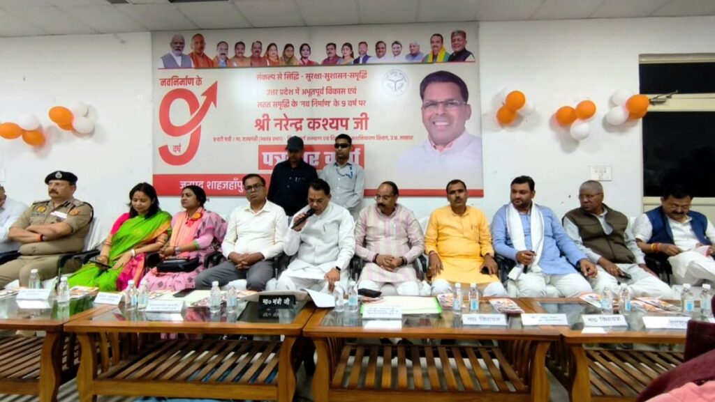 नरेन्द्र कश्यप ने कहा कि प्रदेश सरकार के 9 वर्ष उपलब्धियों से भरे रहे हैं और उत्तर प्रदेश विकास, सुरक्षा व सुशासन की दिशा में आगे बढ़ा है। इस दौरान सांसद अरुण कुमार सागर, जिला अध्यक्ष केसी मिश्रा, नगर अध्यक्ष शिल्पी गुप्ता, विधायक चेतराम, वीर विक्रम सिंह, सलोना कुशवाहा, हरि प्रकाश वर्मा, डीपीएस राठौर, जिलाधिकारी धर्मेन्द्र प्रताप सिंह, पुलिस अधीक्षक राजेश द्विवेदी, नगर आयुक्त विपिन कुमार मिश्र व सीडीओ अपराजिता सिंह सहित अन्य अधिकारी मौजूद रहे।