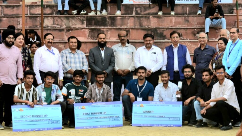 यूपी – गाजियाबाद स्थित राज कुमार गोयल प्रौद्योगिकी संस्थान (आरकेजीआई) में पुष्पक क्लब के अंतर्गत राष्ट्रीय स्तर की एफपीवी ड्रोन प्रतियोगिता ‘एयरो ट्रैक F1’ का सफल आयोजन किया गया। देशभर के विभिन्न राज्यों से आए प्रतिभागियों ने इसमें भाग लेकर अपने ड्रोन संचालन कौशल, गति और सटीकता का शानदार प्रदर्शन किया। प्रतियोगिता का उद्देश्य युवाओं में ड्रोन तकनीक, नवाचार और आधुनिक इंजीनियरिंग के प्रति रुचि को बढ़ावा देना रहा।