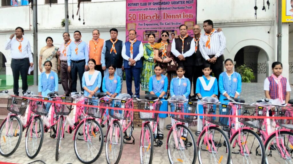 यूपी – गाजियाबाद। समाजसेवी रो. अनिल गर्ग और रोटरी क्लब गाजियाबाद ग्रेटर ने बालिका शिक्षा को प्रोत्साहित करने के उद्देश्य से कन्या वैदिक इंटर कॉलेज में 50 छात्राओं को निःशुल्क साइकिलें वितरित कीं। यह कार्यक्रम रोटरी फाउंडेशन के CSR ग्रांट के अंतर्गत आयोजित किया गया।
