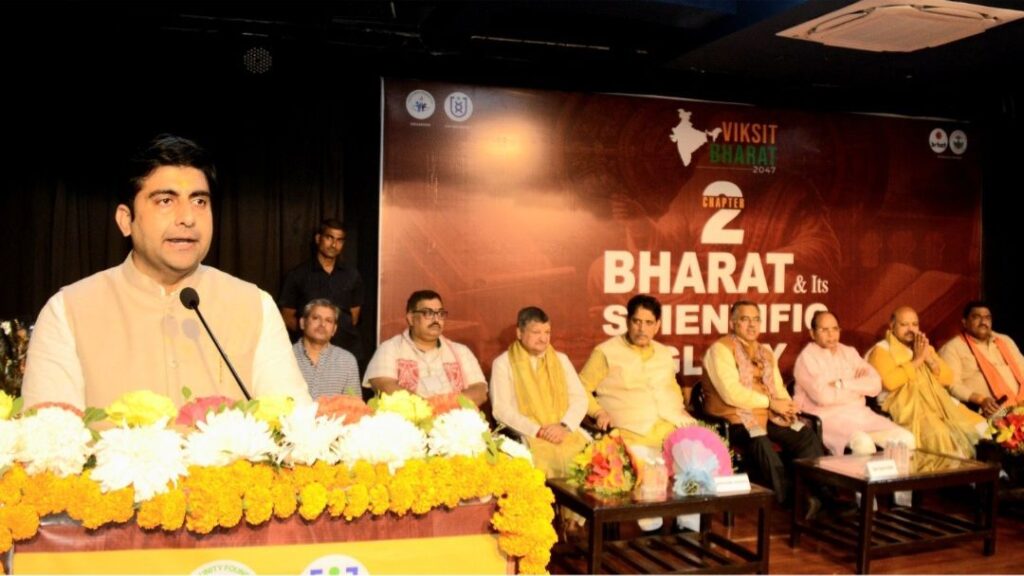 मुख्य अतिथि भाजपा के राष्ट्रीय महासचिव तरुण चुघ ने भारत की प्राचीन वैज्ञानिक परंपरा, आधुनिक उपलब्धियों और वैश्विक प्रतिष्ठा पर प्रकाश डालते हुए युवाओं से वैज्ञानिक दृष्टिकोण अपनाने और “विकसित भारत 2047” के लक्ष्य में योगदान देने का आह्वान किया। उन्होंने गणित, खगोल विज्ञान, आयुर्वेद और तकनीकी नवाचार में भारत की ऐतिहासिक भूमिका को रेखांकित किया।