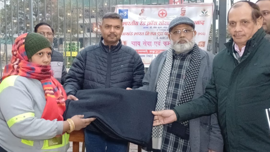 भारतीय रेड क्रॉस सोसाइटी की प्रेरणा से कंबल, चाय सेवा व सैनिटरी पैड वितरण कार्यक्रम संपन्न