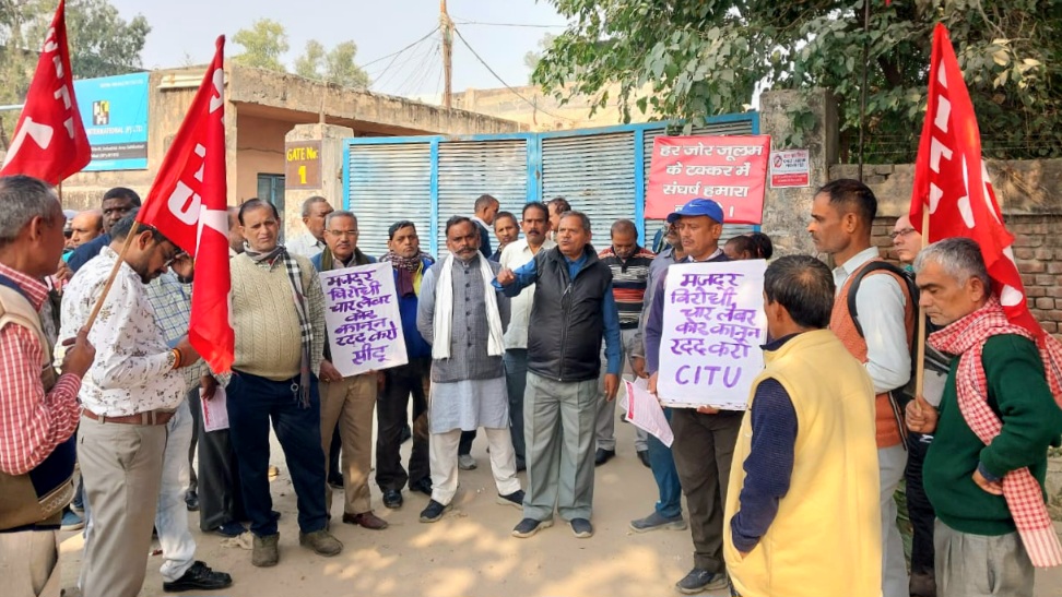 लेबर कोड लागू करने के विरोध में औद्योगिक क्षेत्रों में मजदूरों का प्रदर्शन